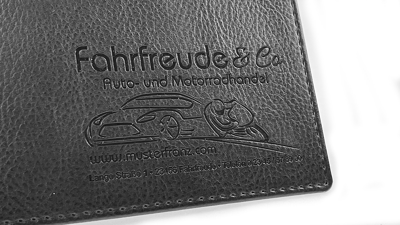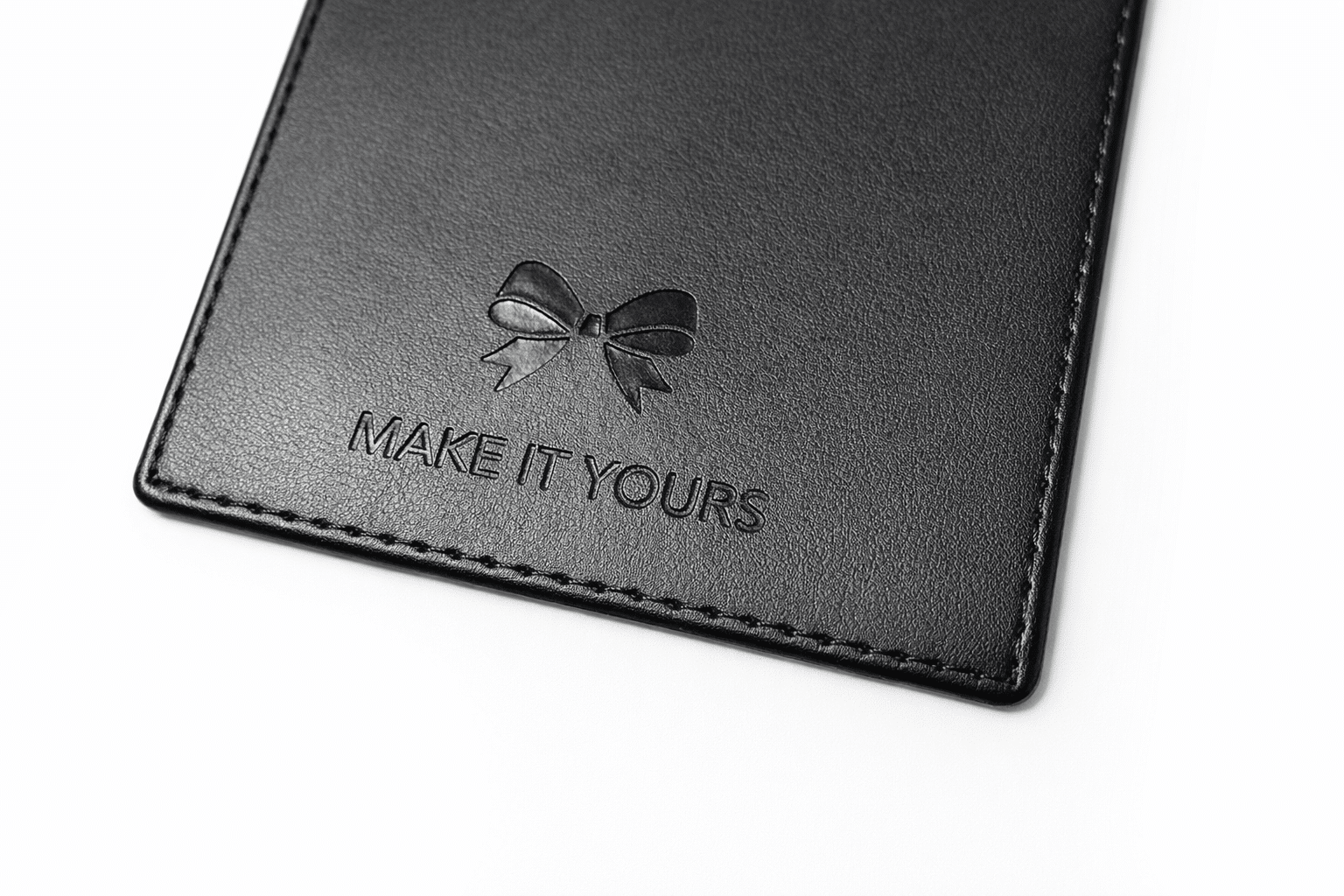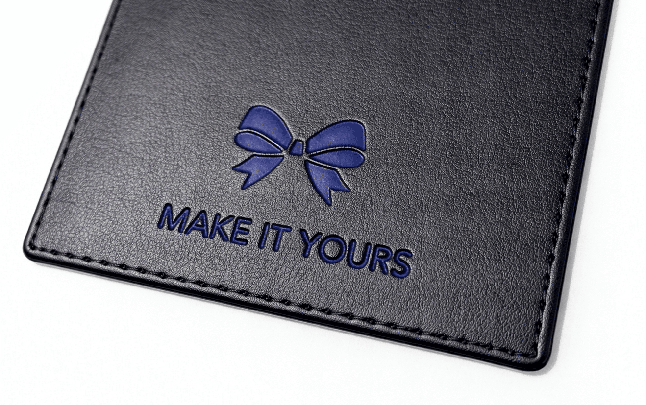 Your logo is pressed into the material and overlaid with foil, creating a luxurious, high-contrast result.