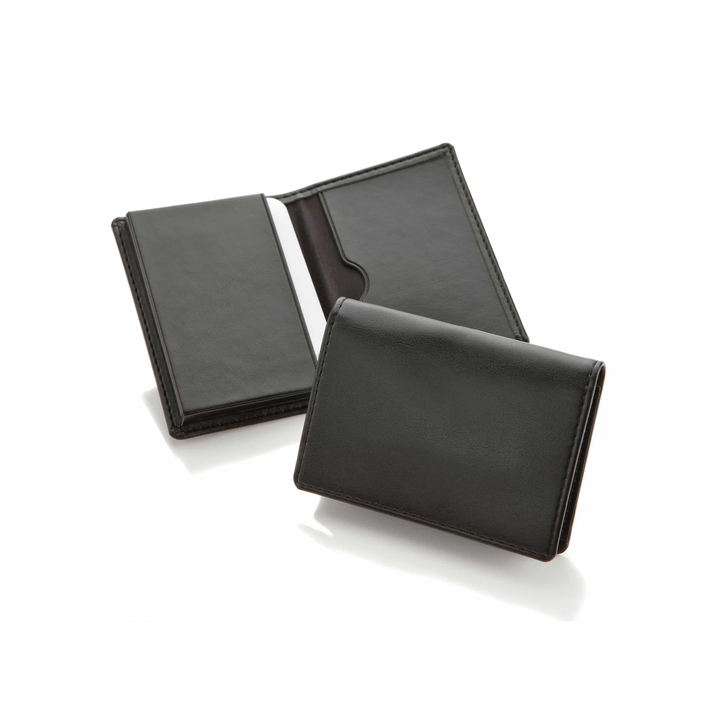 Economy business card holder with one internal pocket and a gusseted pocket designed to hold approximately 20–30 cards. Suitable for professional and promotional use.
